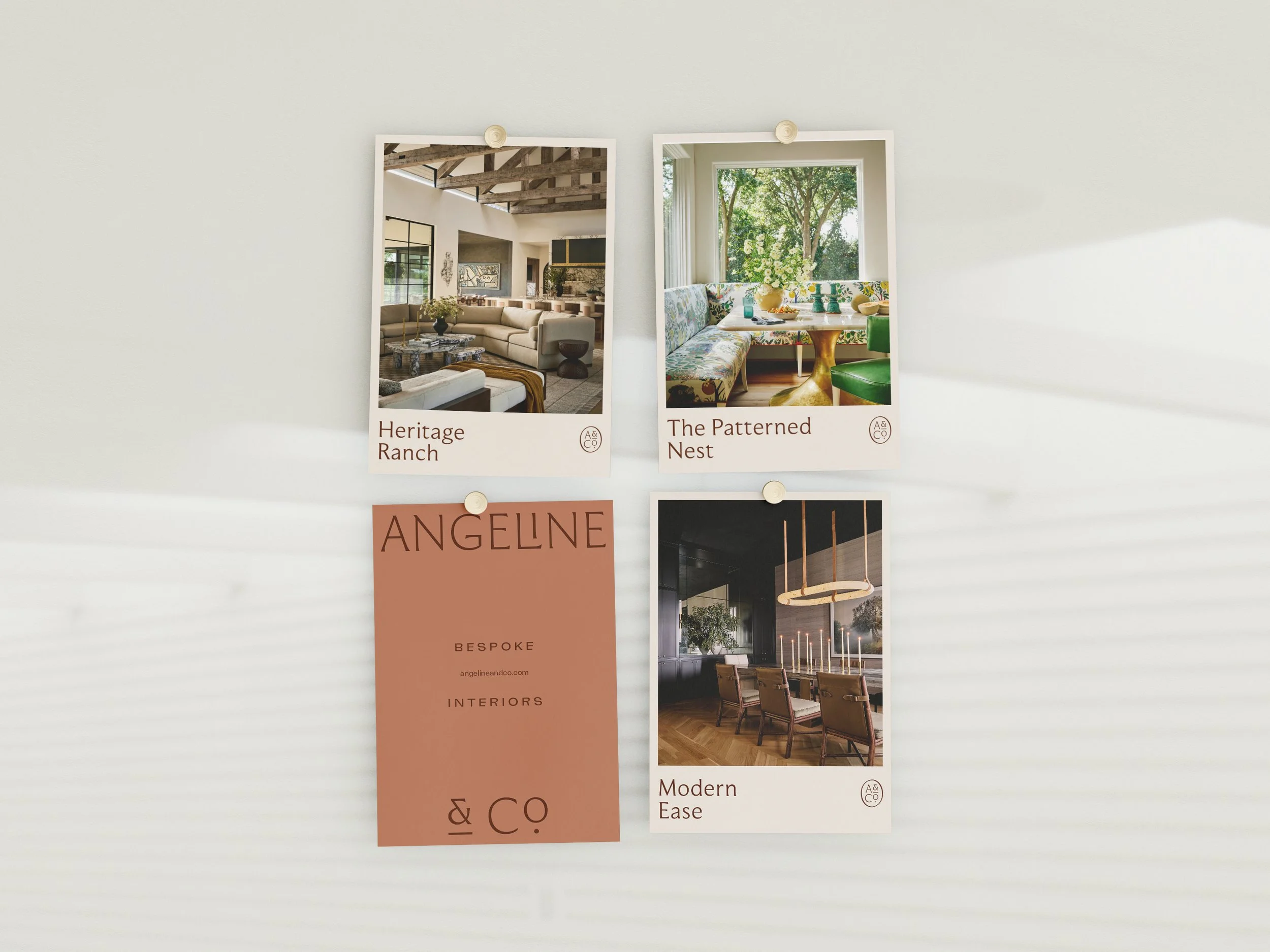 We brought a series of names to the table—some wildly new, some that stuck close to their roots. After weighing all the pros & cons, the team kept circling back to Angeline’. It’s distinct, it’s elegant, and it already carried a decade of brand equity. Adding “& Co.” was the simplest, smartest move—instantly honoring the collective team while providing flexibility for future growth outside of their current design services. Proof that sometimes less really is more.